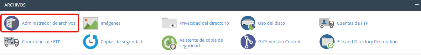1- Dentro de nuestro Cpanel buscamos el administrador de archivos: