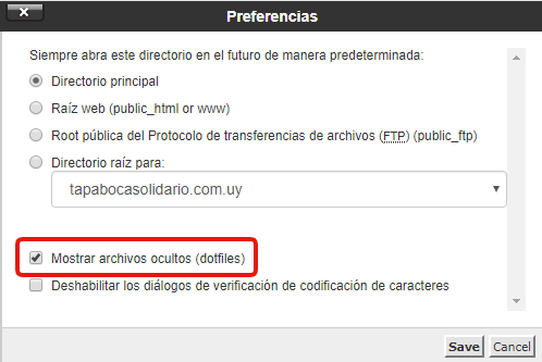 Una vez que modificamos esos valores deberemos entrar al .htaccess dentro del administrador de archivos, para llegar al mismo debes seguir los siguientes pasos: